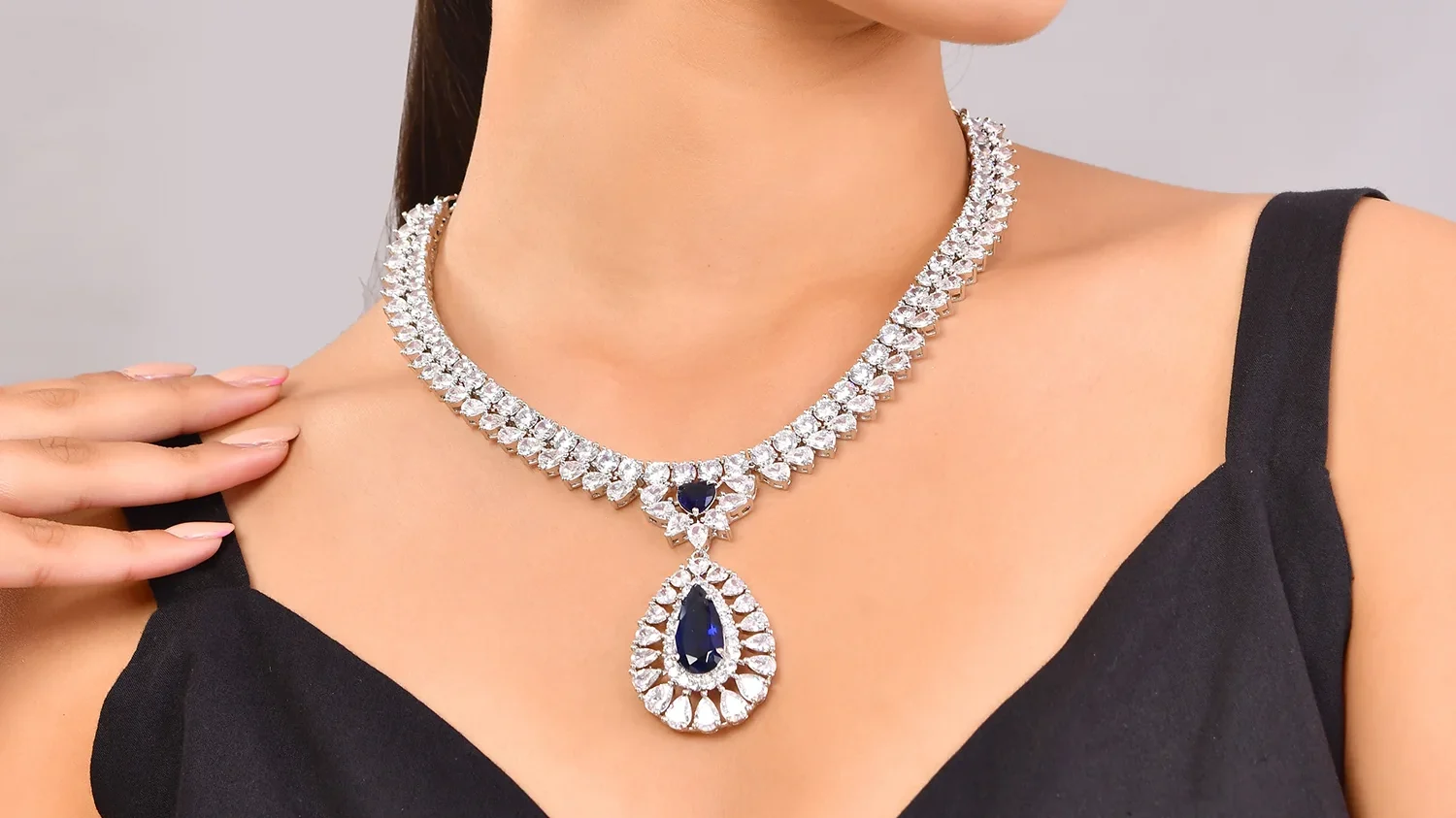A stunning American Diamond pendant with matching earrings, designed for daily wear and gifting. Lightweight, shiny and perfect for both western & ethnic outfits.